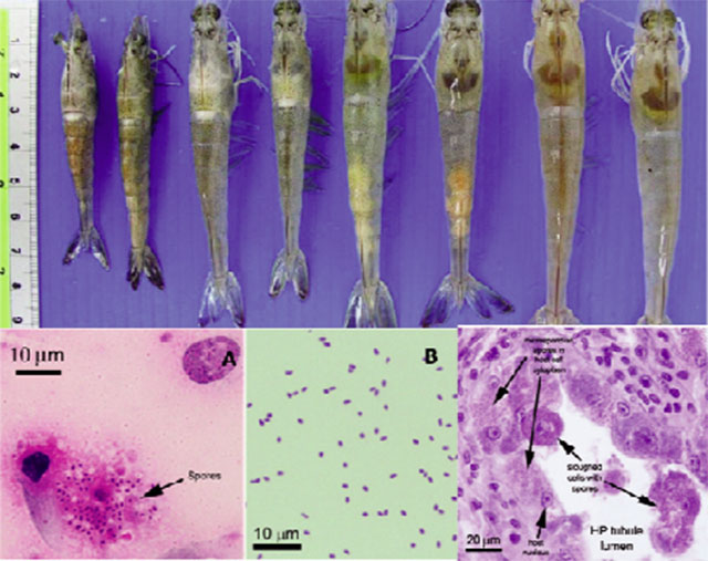 EHP là một loại vi bào tử trùng (Microsporidia), không phải vi khuẩn hay virus. Nó tấn công vào tế bào gan tụy, làm tôm không hấp thụ được dinh dưỡng, dù ăn nhiều nhưng vẫn chậm lớn.